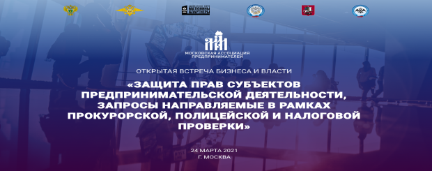 Преображенская межрайонная прокуратура г. Москвы и Московская Ассоциация Предпринимателей организуют серию рабочих встреч с предпринимательским сообществом и экспертами, направленные на разъяснение деятельности ведомств по реальной защите интересов малого и среднего бизнеса столицы. 24 марта 2021 года состоится очередное мероприятие «Открытая встреча бизнеса и власти» на тему "Защита субъектов прав предпринимательской деятельности, запросы, полученные в рамках прокурорской, полицейской и налоговой проверки."
