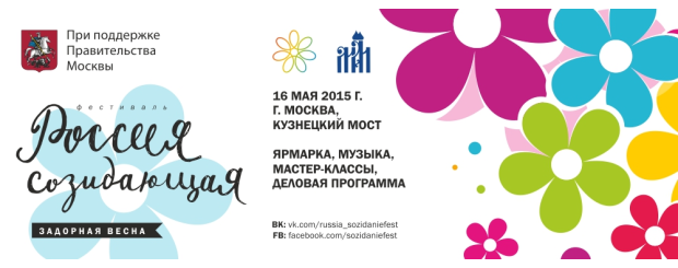 16 мая 2015 года при поддержке Правительства Москвы на Кузнецком мосту состоится фестиваль «Россия созидающая», объединяющий российских производителей, предпринимателей, деятелей культуры, дизайнеров, музыкантов.