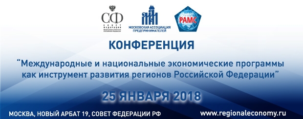 25 января 2018 года в Москве состоится конференция «Международные и национальные экономические программы как инструмент развития регионов Российской Федерации».