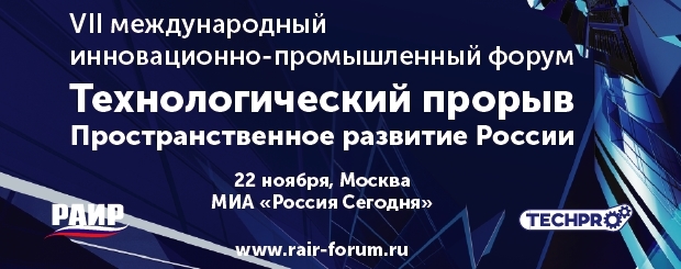 22 ноября при поддержке Московской ассоциации предпринимателей, РАИР в 7ой раз проведет международный инновационно-промышленный форум «Технологический прорыв». Центральной темой форума в 2018 году станет Пространственное развитие России.