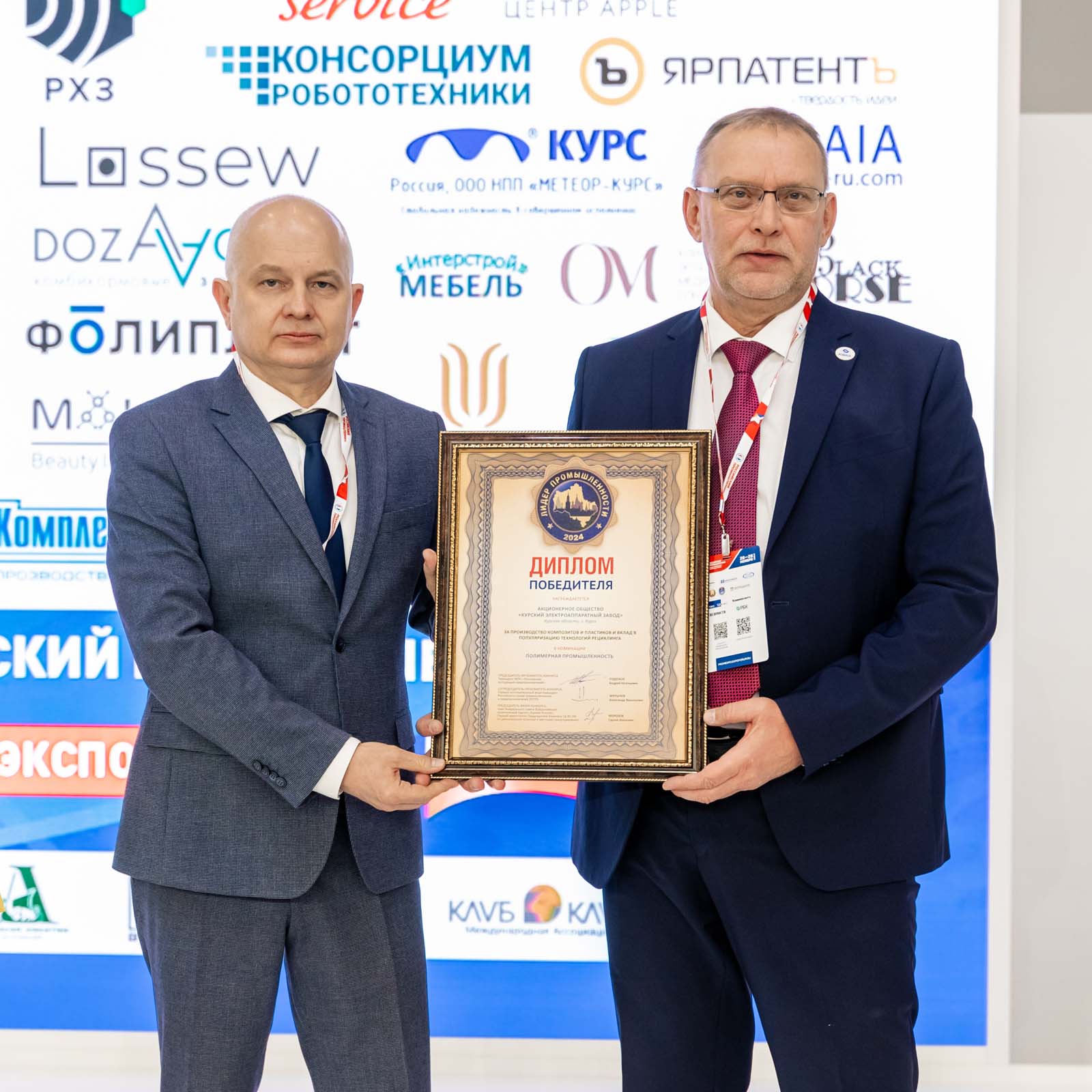 АО «КУРСКИЙ ЭЛЕКТРОАППАРАТНЫЙ ЗАВОД», Курская область, г. Курск, в номинации Полимерная промышленность – диплом победителя «За производство композитов и пластиков и вклад в популяризацию технологий рециклинга»