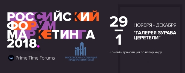 Московская ассоциация предпринимателей совместно с Prime Time Forums приглашает Вас на Российский форум Маркетинга, который состоится с 29 ноября по 1 декабря 2018 года в галерее Зураба Церетели.