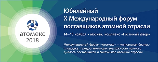 X Международный форум поставщиков «АТОМЕКС 2018» пройдет при поддержке Госкорпорации «Росатом». Оператор мероприятия – ООО «Атомэкспо».